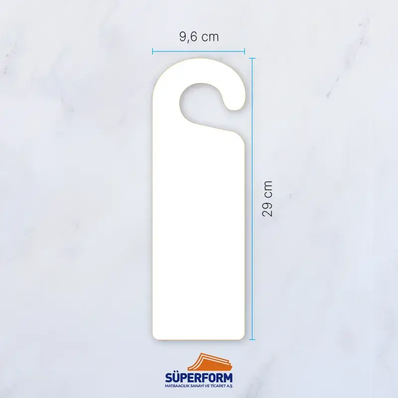 Kapı kolu askıları, oteller, ofisler, restoranlar ve diğer işletmelerde dikkat çekici ve pratik bir tanıtım aracı olarak kullanılan etkili bir üründür. Kapı kolu askıları, müşterilerinizin veya misafirlerinizin kapılarda fark edeceği ve doğrudan mesajınızı iletebileceğiniz reklam araçlarıdır. Süperform Matbaacılık A.Ş. olarak, kapı kolu askılarınızı yüksek kaliteli malzemeler ve baskı teknikleri kullanarak üretiyor, işletmenizin marka imajını güçlendirecek çözümler sunuyoruz.
