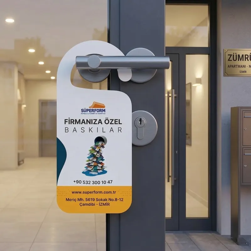 Süperform Matbaacılık A.Ş.? olarak kaliteye ve müşteri memnuniyetine verdiğimiz önemle fark yaratıyoruz. Kapı kolu askısı baskılarında, markanızı en iyi şekilde temsil edecek çözümler sunuyor ve baskı sürecinin her aşamasında özenle çalışıyoruz. Uzman ekibimiz, en iyi sonuçları elde etmek için titizlikle çalışır ve sizin için en uygun çözümleri sunar. Yüksek kalite malzeme ve baskı teknikleri ile kapı kolu askılarınıza değer katıyoruz.