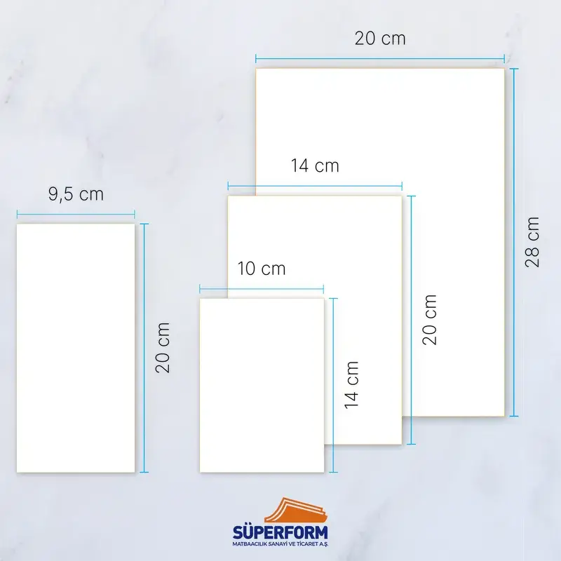 | Ebat | 9,5 x 20 cm, 10 x 14 cm, 14 x 20 cm, 20 x 28 cm |